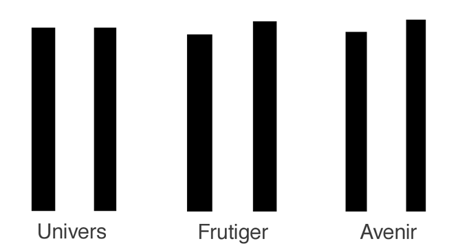 The image below uses three of Adrian Frutiger's more influential typefaces to illustrate these design differences,