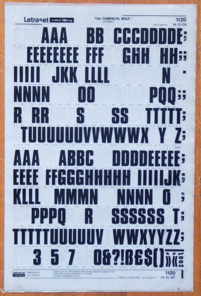 Compacta was designed by Fred Lambert for Letraset in 1963, and other then the original metal cut of Impact
